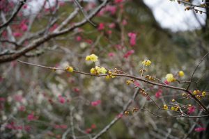 白梅と紅梅の見頃はまだ先ですが、3色の梅を楽しめます。